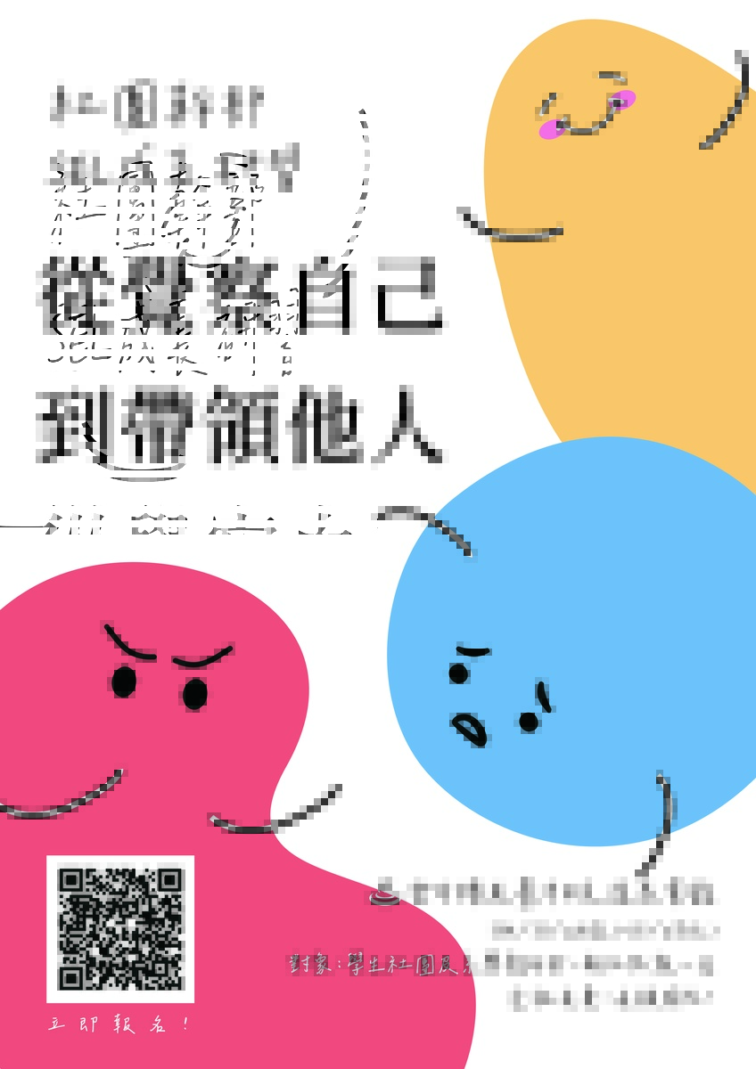 - 【更新】對象:學生社團幹部及有志於未來擔任社長或幹部的社員報名參加,每個社團或系學會至多一位,名額有限,請及早報名!