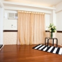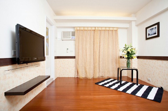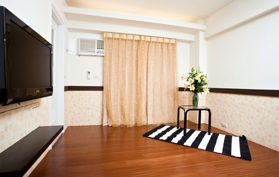 房間木地板,有對外窗,開窗可見綠樹,可曬衣