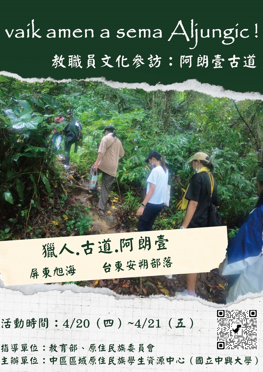 活動對象 : 大專院校全體教職員 (中區大專校院原民相關業務、教育等單位教職人員為優先錄取。)