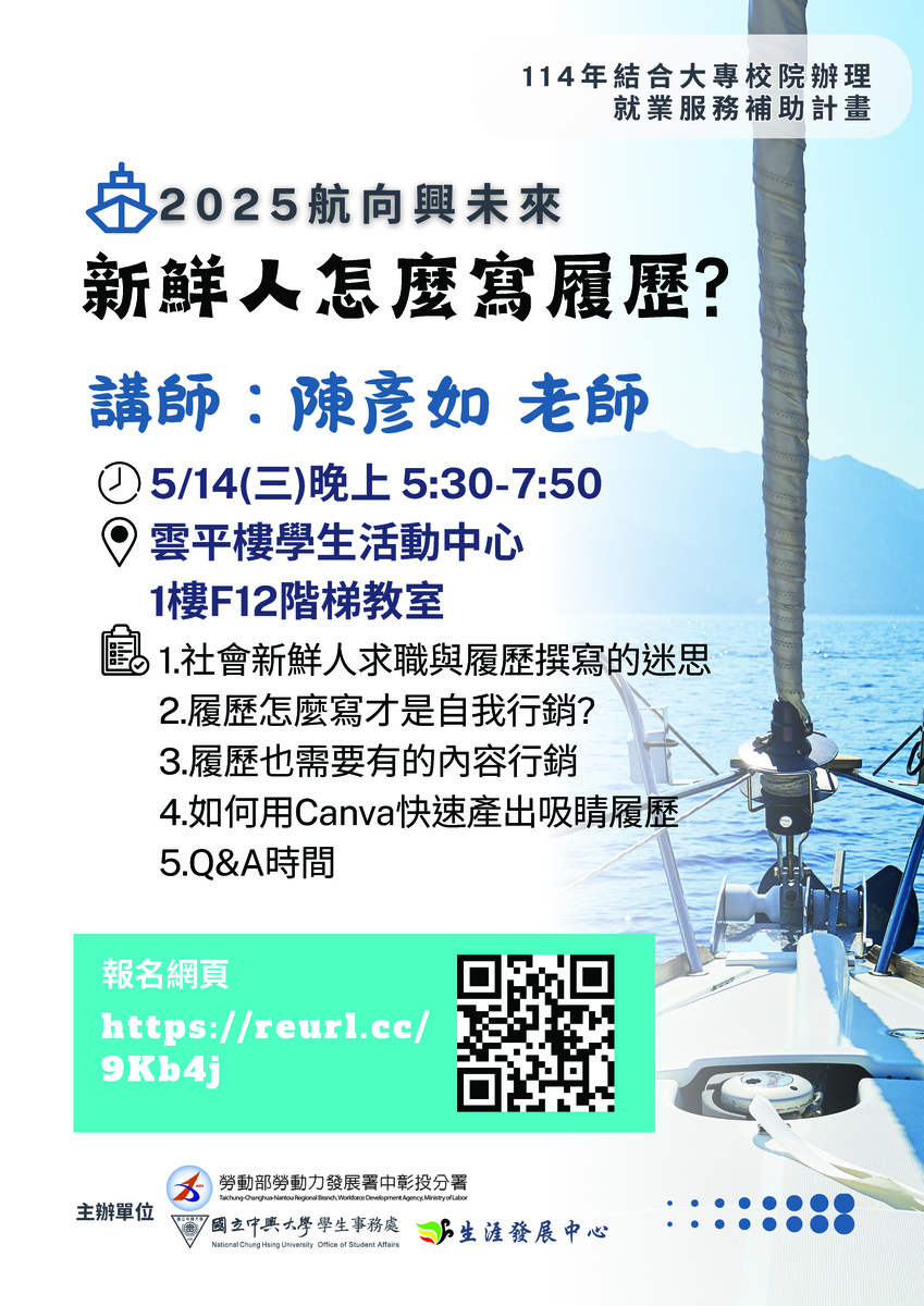 報名網頁 Registration Webpage https://www.osa.nchu.edu.tw/osa/cdc/sys/modules/eguide/event.php?eid=3134
