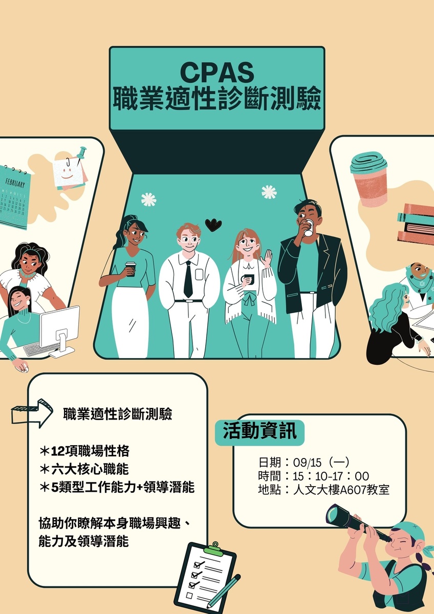 透過CPAS 測評,幫助學生探索理想工作,理解性格如何影響職場選擇,並制定職涯行動計畫。