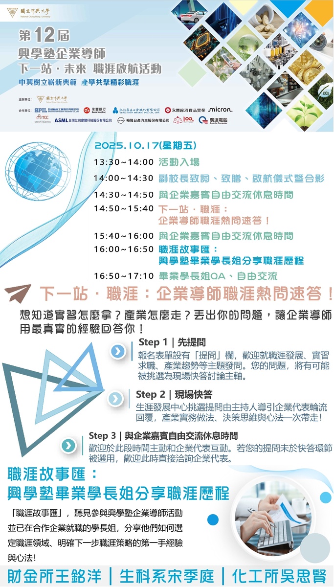 5.若有任何活動問題請洽:國立中興大學生涯發展中心李小姐04-22840237#30