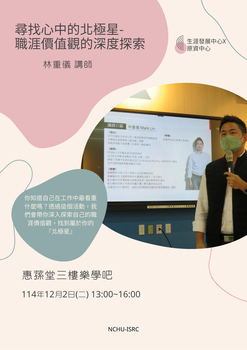 主題:尋找心中的北極星-職涯價值觀的深度探索
