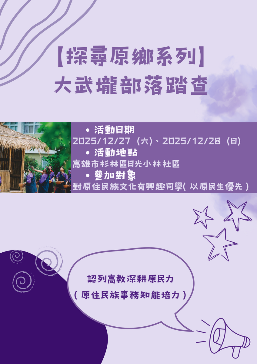主辦單位:國立中興大學學務處原住民族學生資源中心