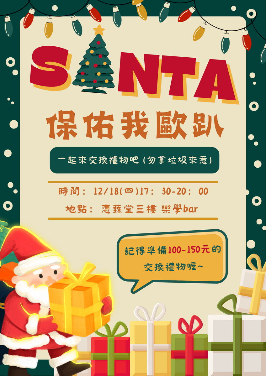 請大家準備100-150元的交換禮物(請勿拿垃圾來交換哦)。