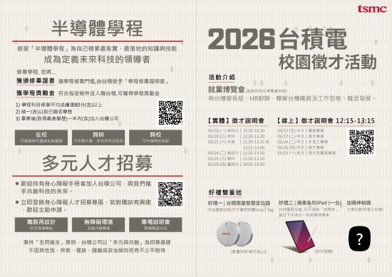 2026台積電校園徵才暨暑期實習計畫 2026 TSMC Campus Recruitment & Summer Internship