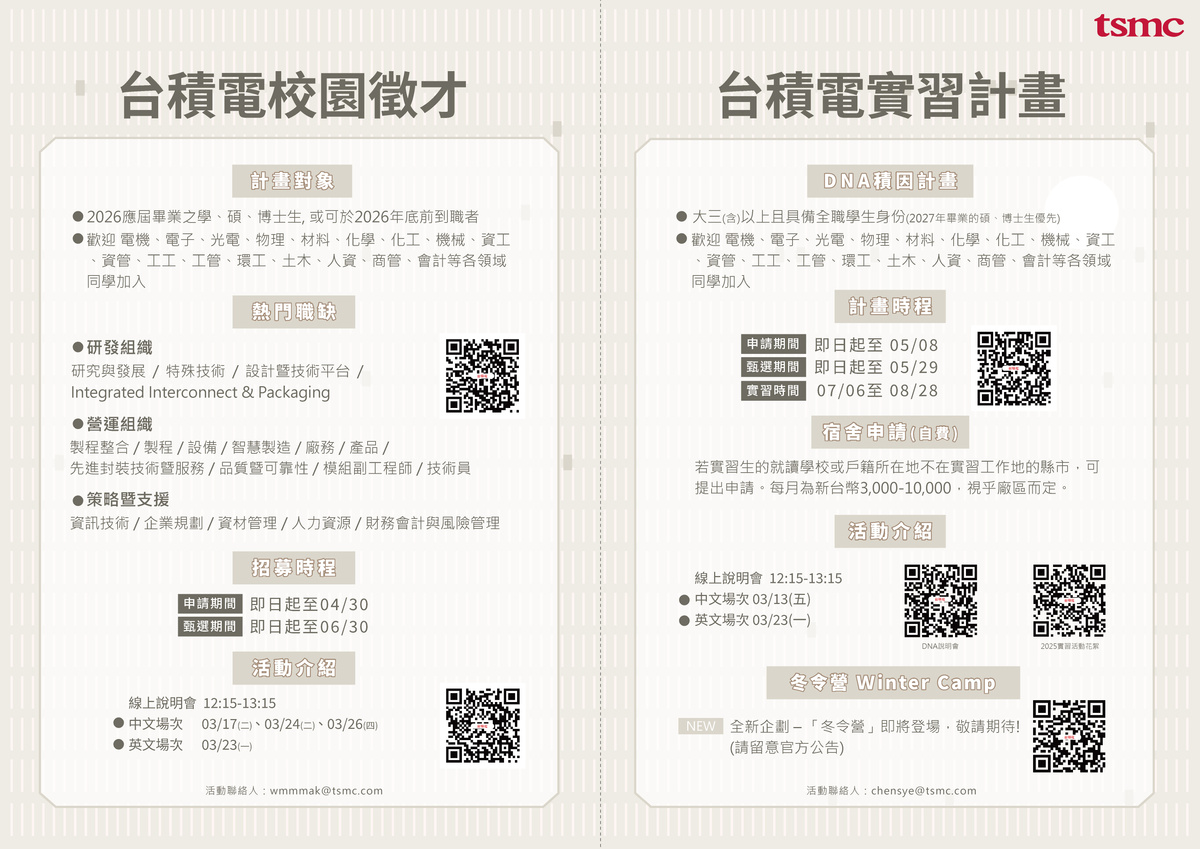 【2026台積電校園徵才暨暑期實習】手刀報名,搶先卡位!
