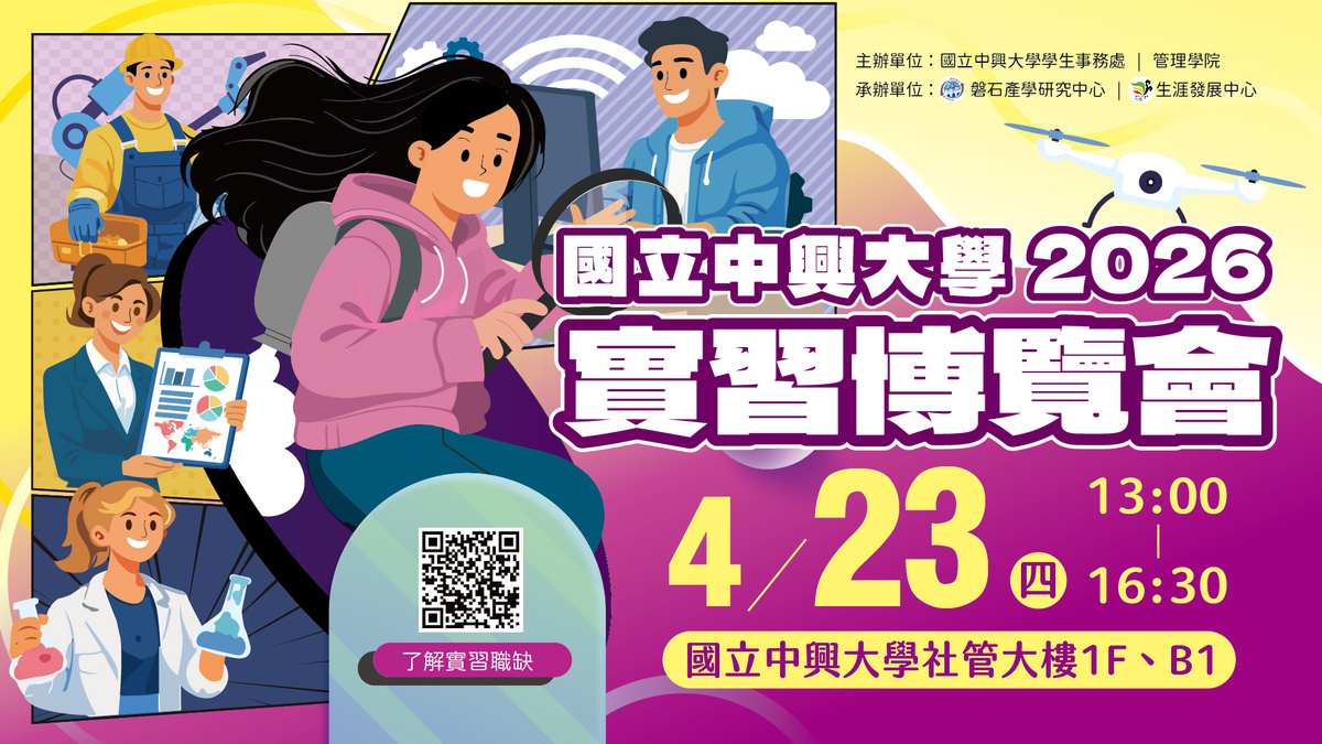 國立中興大學 【2026實習博覽會】--探索方向,實踐職涯National Chung Hsing University 2026 Internship Fair — Discover Your Path, Launch Your Career