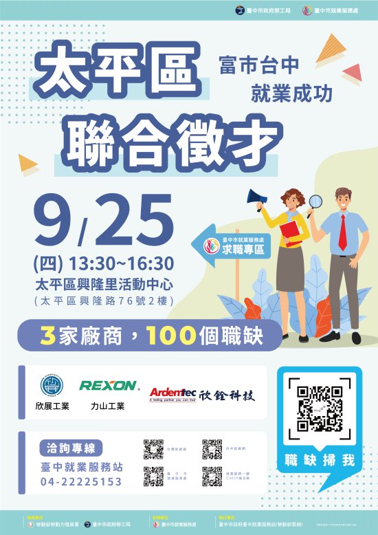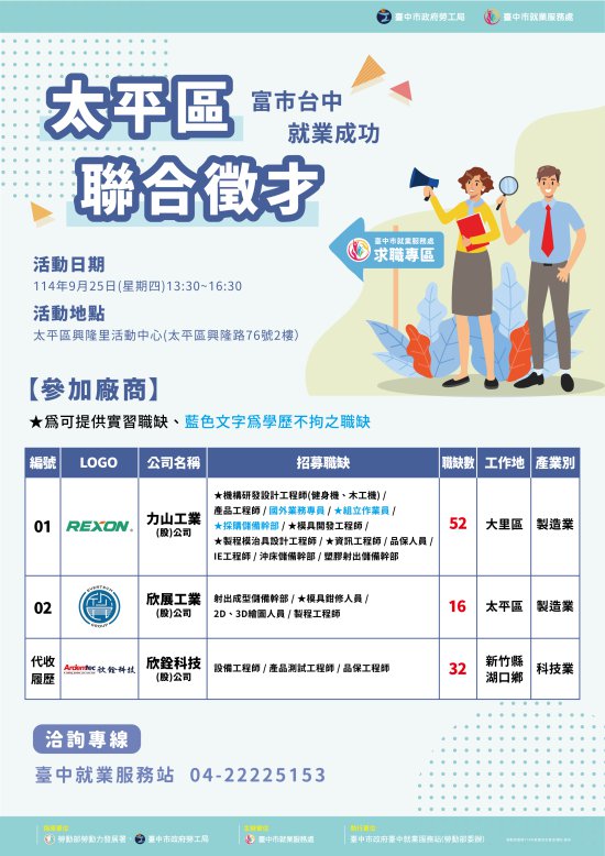 臺中市政府2025「富市台中 就業成功」太平區聯合徵才