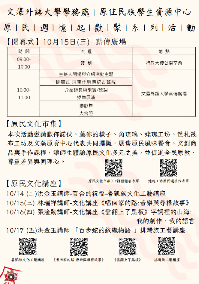 文藻外語大學原資中心舉辦「原民週」系列活動