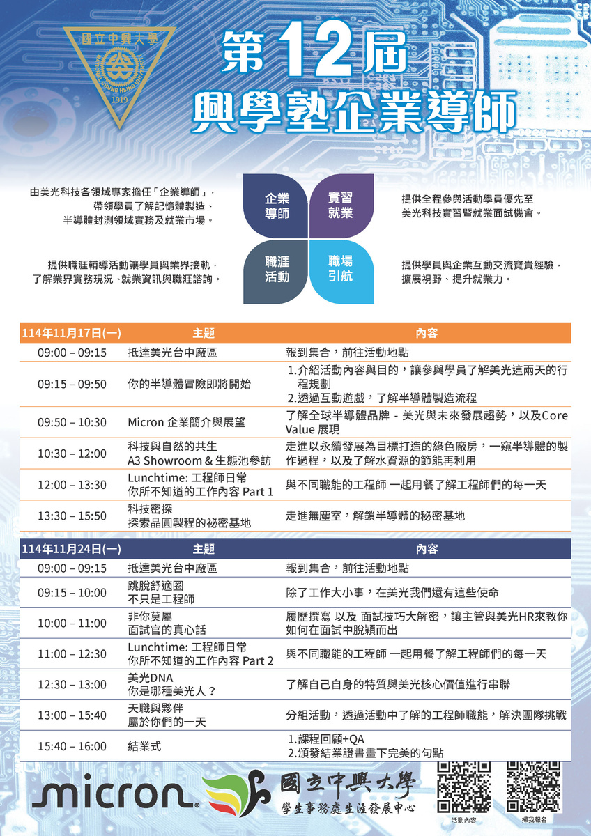 興學塾企業導師【美光科技】熱烈報名中~~ NCHU Xingxueshu Mentorship Program Micron