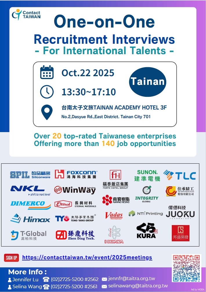 【Working in Taiwan】Contact TAIWAN One-on-One Interviews