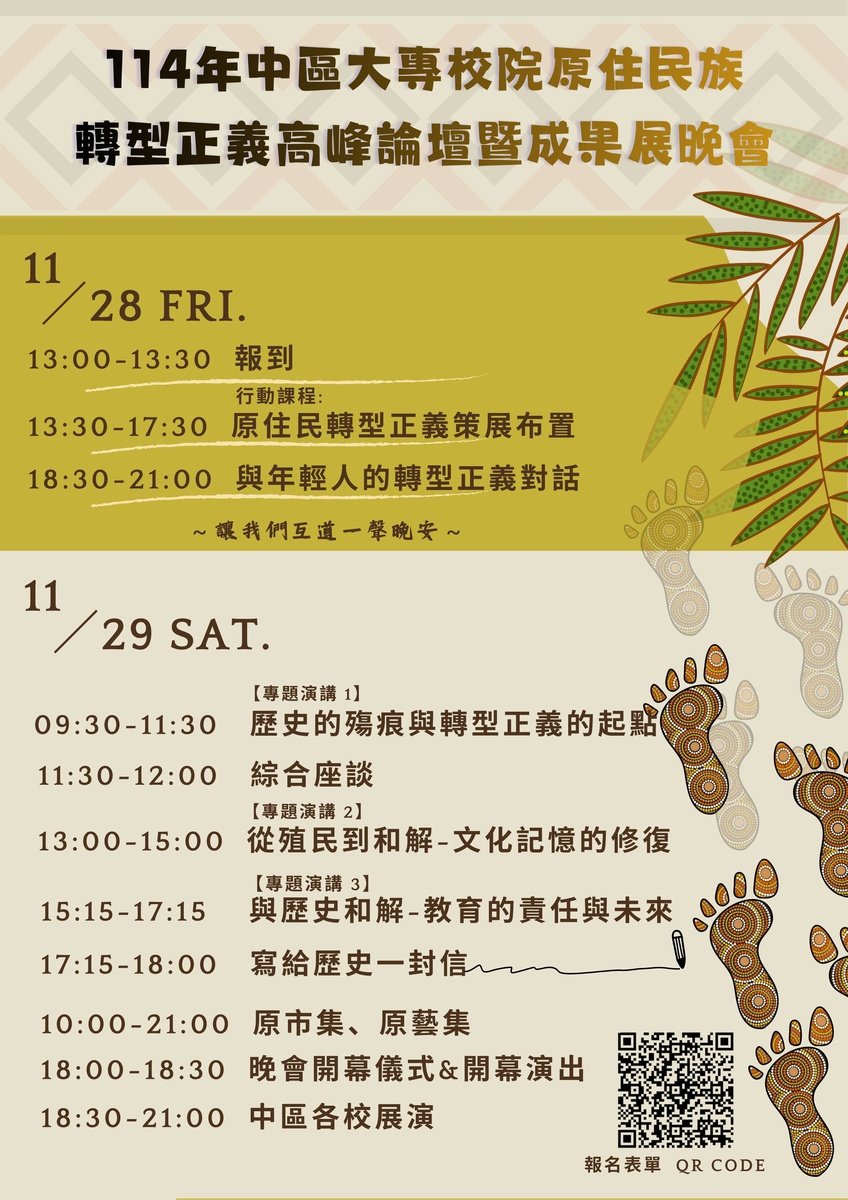 二、原住民族在轉型正義進程中所承受的歷史創傷常被忽略,「歷史的殤痕」不僅存在於過去,也深刻影響當代原住民族的身分認同與社會處境。旨揭論壇以「從歷史殤痕走向自我和解」為主軸,透過教育與青年對話,理解這段歷史如何形塑現在,共同思考「真正的和解」應該如何發生,也與自我身份認同和解。