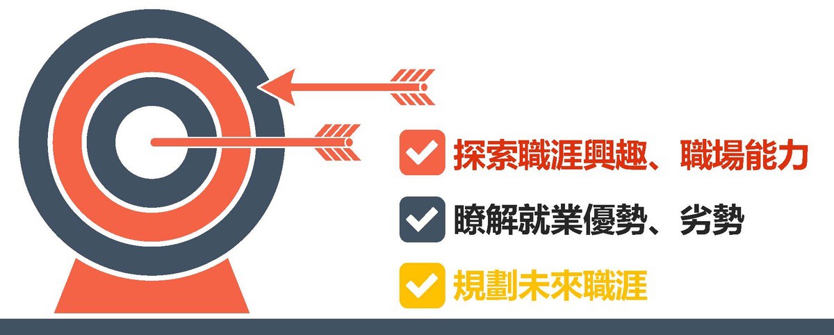 藉由職業適性診斷測驗,協助你瞭解本身職場興趣、能力及未來產業發展趨勢等三者之間的關聯性,於測驗後將產出量表,藉由測驗結果及職涯顧問一對一諮詢,更瞭解自我本身,以投入職場。