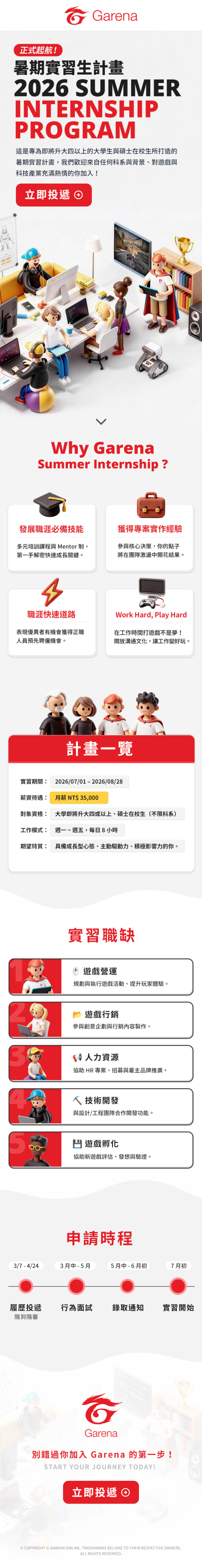 投遞連結:https://www.garena.tw/internship/summer/2026/index.html