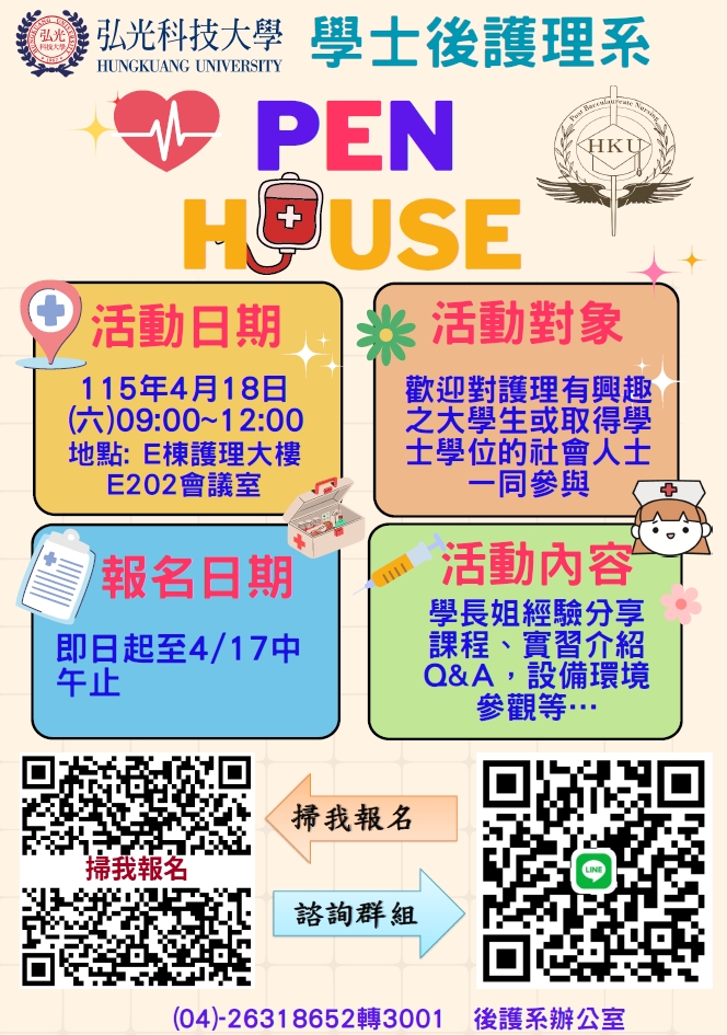 弘光科技大學學士後護理系於115年04月18日(六)辦理「學士後護理系OPEN HOUSE活動」