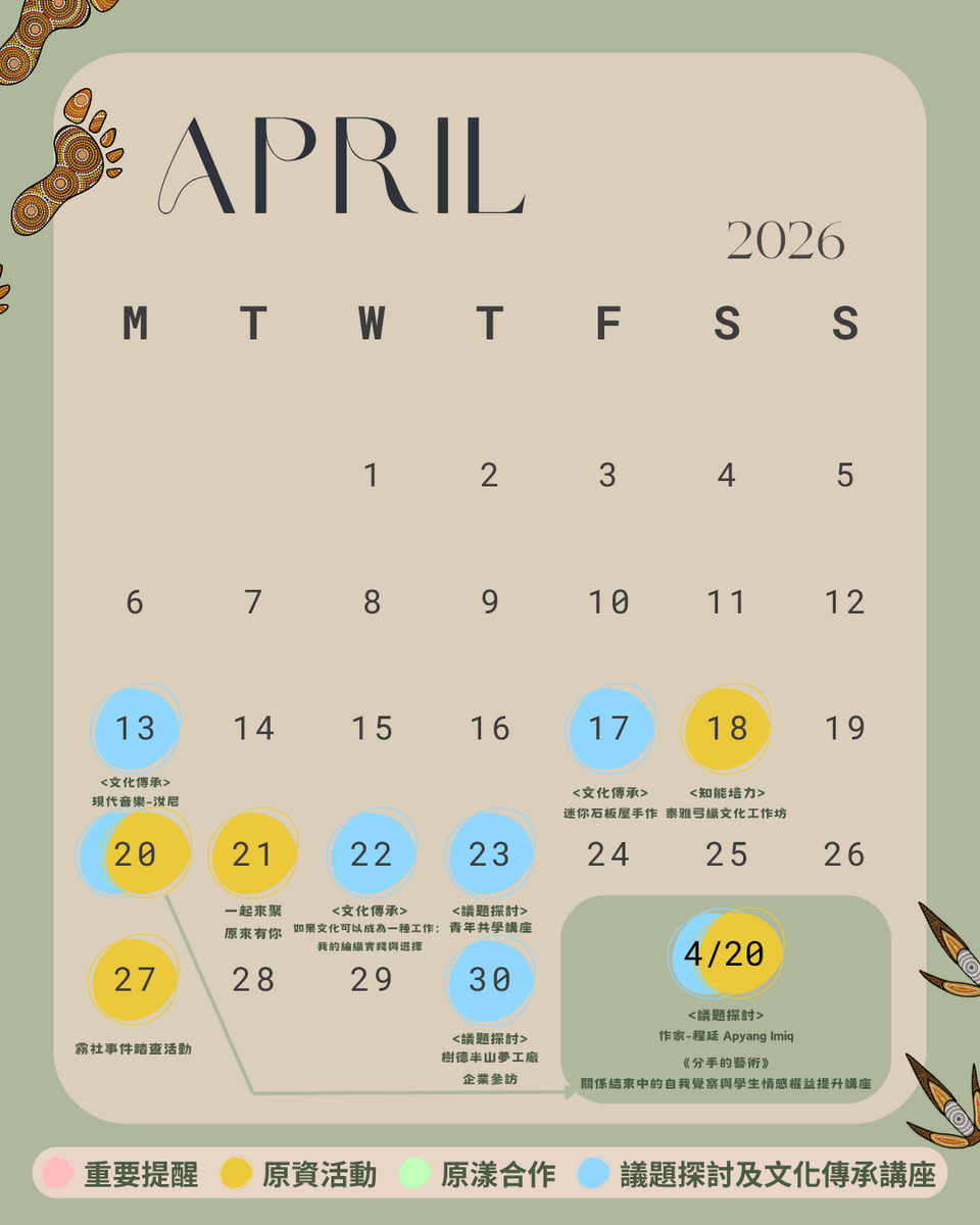 4/20 通識課程講座-作家程廷 Apyang Imiq-報名請點我