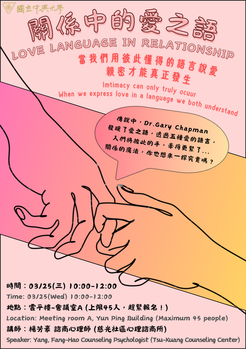 ➤【活動名稱Course】:關係中的愛之語:當我們用彼此懂得的語言說愛,親密才能真正發生(Love Language in Relationships :