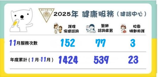 每月健康服務統計,讓您掌握最新校園健康動態!