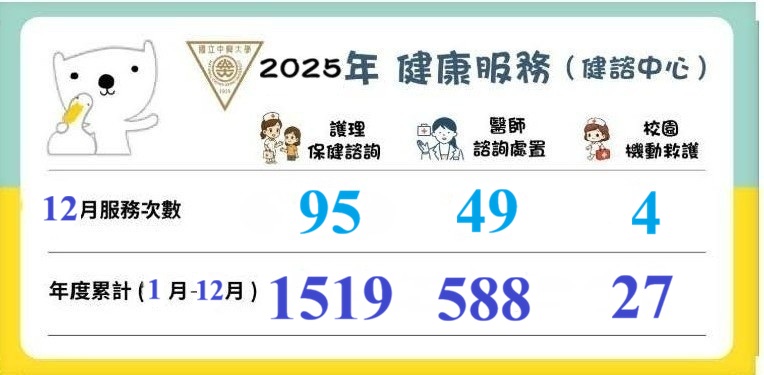 每月健康服務統計,讓您掌握最新校園健康動態!
