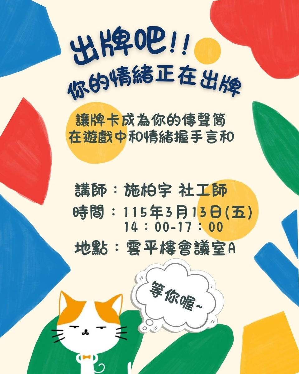 ➤【活動時間Time】:115/03/13(Fri.)14:00-17:00