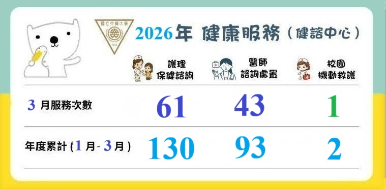 每月健康服務統計,讓您掌握最新校園健康動態!
