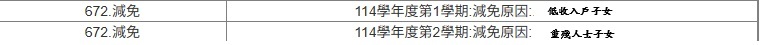- 請注意:依其他規定領取政府提供有關就學費用之補助(如農、漁會、失業勞工、軍公教人員子女等),或重考、復學、轉學後相當學期已領取過補助、減免,不得重複申請本學雜費減免。