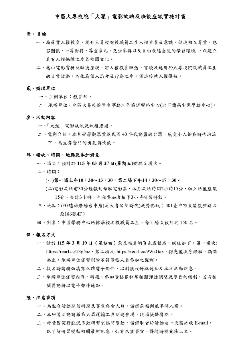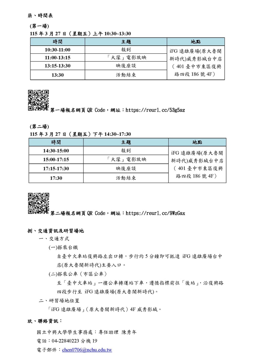 3. 聯絡人:中區學務中心專任助理陳秀年(TEL:04-22840223#19)