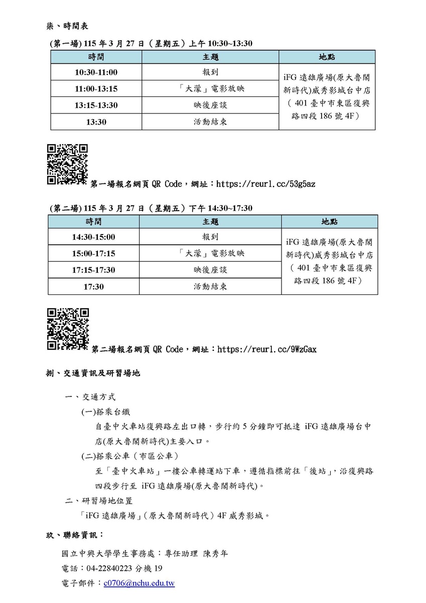3. 聯絡人:中區學務中心專任助理陳秀年(TEL:04-22840223#19)